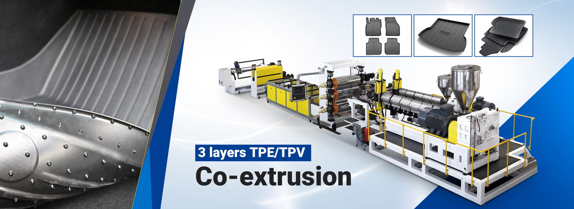 Wuhu Kaijinhua New Material Technology Co., Ltd. (previously known as Wuxi Kaijinhua Plastic Industry Co., Ltd.) specializes in PVC data strip extrusion nachine, PC LED diffusser extrusion machine,TPE/TPR carpet back coating machine, TPE/TPV carmat vacuum forming sheet extrusion machine,TPR/TPE/TPV granule R & D production and sales. At present, our company has passed the ISO9001:2015 quality management system assessment. The machines produced by our company have obtained CE certification recognized by the European Union. TPE granule acquire REACH and RoHS certifciate.